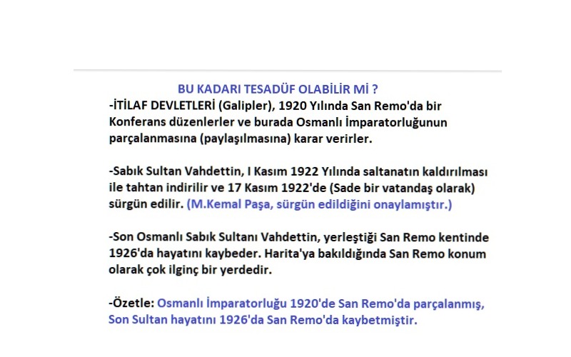 İmparatorluğun parçalanarak, paylaşılması için 1920’de yapılan; “San-Remo Konferansında; Osmanlı Devletinin Asya ve Kuzey Afrika’da bulunan…