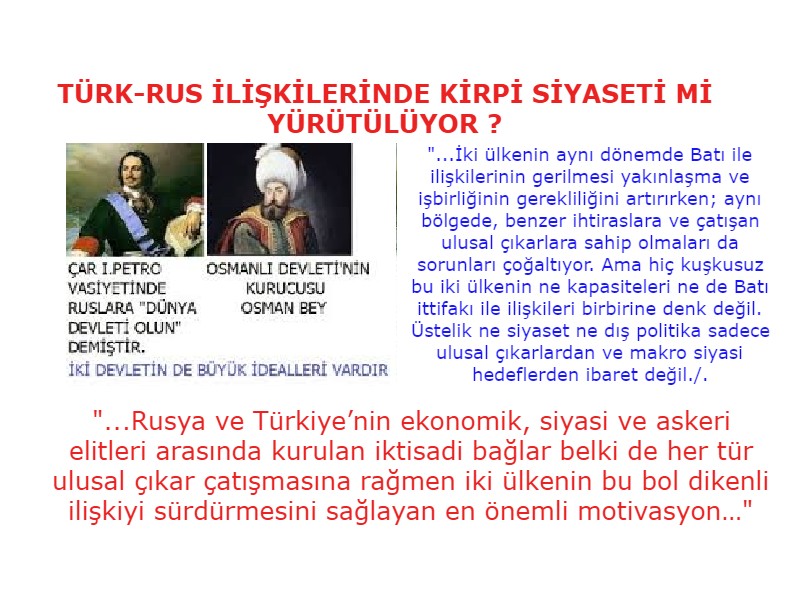 "Rusya öyle bir Türkiye ister ki ne Batı'nın bir parçası olsun tamamen ne de tamamen…