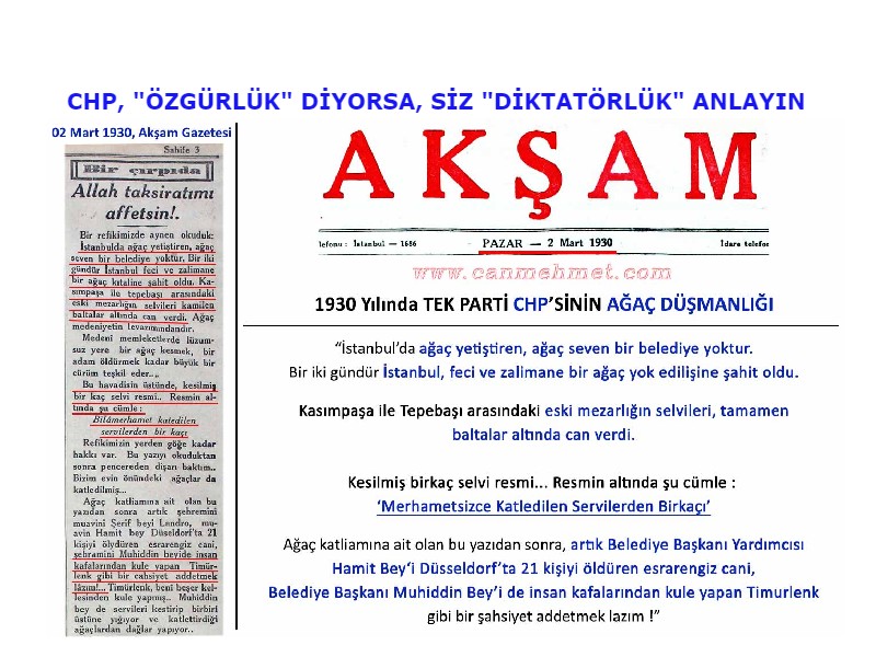 Anladığımız o ki CHP, sadece kişilerin değil, ağaçların da temel (yaşama) hak ve özgürlüklerini korumakta, en azından savunduğunu ilan etmektedir.